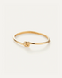 This gold bracelet opens and closes with a hinge and tab lock closure. To open, push down on the highest point of the clasp before pulling the bangle open. To close, listen for a "click" to ensure tab is locked properly. Note: this design wears best when the closure is secured on the inside of your wrist.