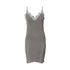 The negligee with spaghetti straps for women impresses with a wavy V-neck which is trimmed with eyelash lace. At the centre of the neckline the lace details meet and cross each other. The armhole openings are also decorated with lace. The back neckline, the back of the armhole openings and the delicate straps are bordered with a shimmering satin band. Small, golden adjusters at the back allow the length of the straps to be changed to fit your needs. For a flattering fit at the hips, an additional large triangle of wide fine rib fabric was inserted at each side. This gives the negligee a slightly flared hem. It is slightly ruffled as a result of a special sewing technique.