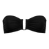 Bandeau, bust shirring at centre front and sides, U-shaped metal link between cups, side stays, large pendant ring at the back.