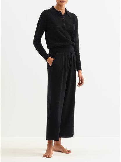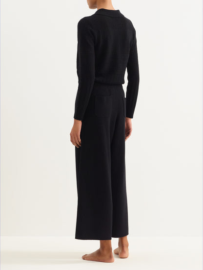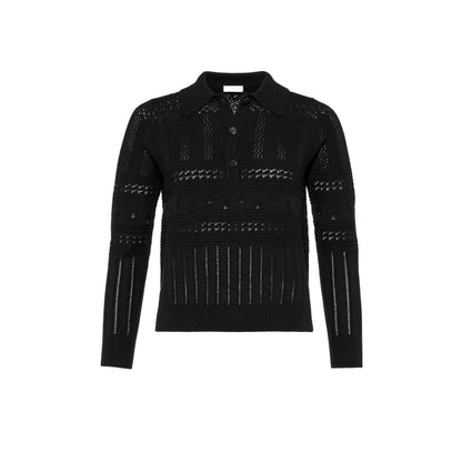 Sweater, Placed multi-stitch pointelle knit, Polo collar with button placket, Ribbed finishes: collar, button placket, sleeve cuffs, and hem, Long sleeves. These openwork knits with a patchwork spirit can be worn together or mismatched at will.