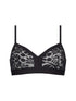 Wireless triangle bra, trimmed with jersey, elasticated underbust band construction, bust darts, straight back