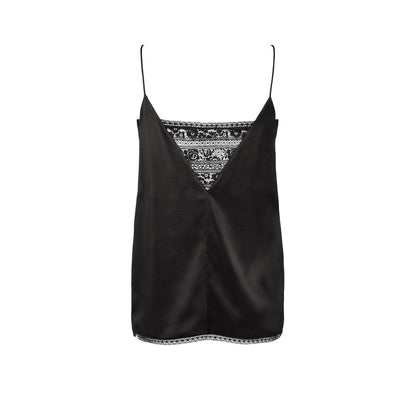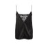 Camisole, Lace inserts: front, back, and underarms, Lace trim at the hem, Adjustable straps. A stretch Leavers lace with a stripe pattern defines this lingerie and homewear line.
