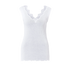 One-of-a-kind thin Richelieu fine rib fabric with two differently wide ribs decorated with delicate, floral eyelash lace. The top with broad straps for women charms with a deep, wavy V-neck which is trimmed with eyelash lace. At the centre of the neckline the lace details meet and cross each other. The back neckline as well as the armhole openings are bordered with a shimmering band. The hem is slightly ruffled as a result of a special sewing technique.