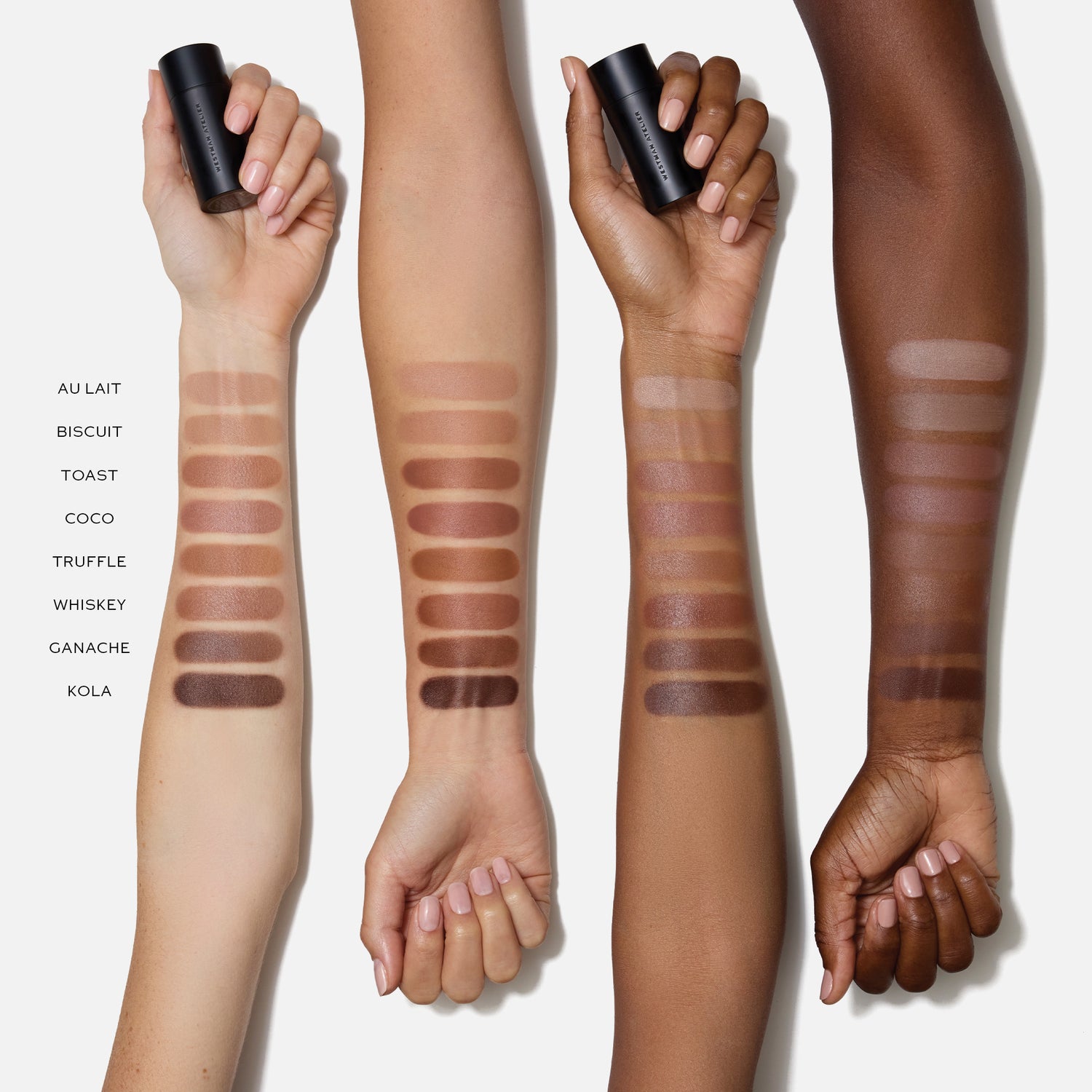 • Start by tracing the stick anywhere you'd like to sculpt. Below the cheekbones, layering and blending with Westman Atelier Baby Blender Brush or your fingers.