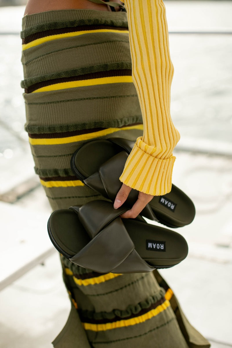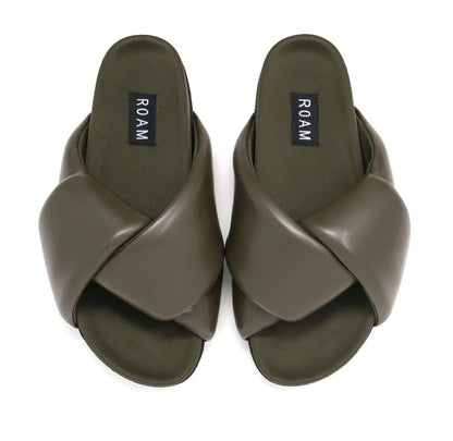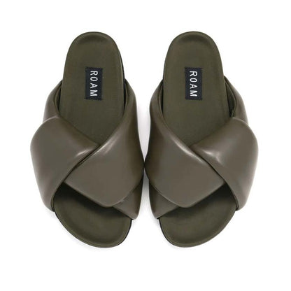 ROAM’s ‘Foldy Puffy’ is made in buttery vegan leather and lined in breathable, moisture wicking neoprene. Memory foam is inserted by hand into the upper which creates extreme comfort and allows the shoe to mold to your foot for a perfectly cushioned and supportive fit.