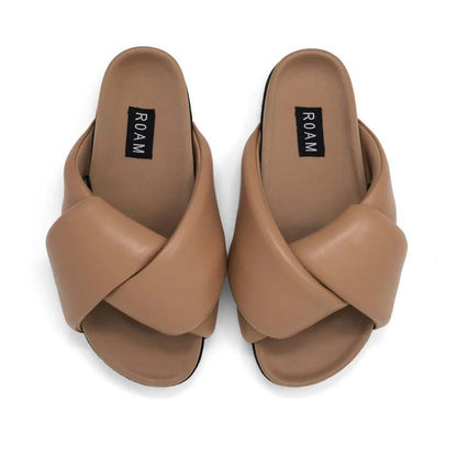 ROAM’s ‘Foldy Puffy’ is made in buttery vegan leather and lined in breathable, moisture wicking neoprene. Memory foam is inserted by hand into the upper which creates extreme comfort and allows the shoe to mold to your foot for a perfectly cushioned and supportive fit.