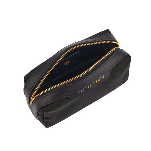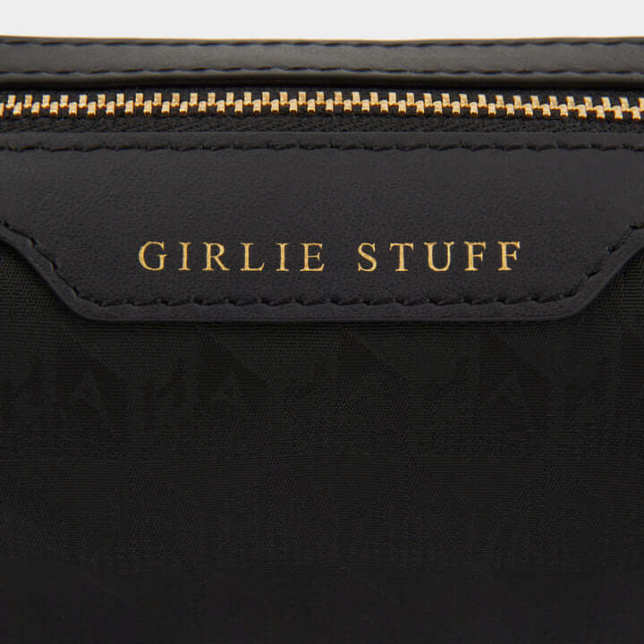 Made from monogrammed nylon, the latest incarnation of our classic Girlie Stuff Pouch is surrounded by smooth-leather trims for a hardy, durable silhouette. Small enough to stow into your suitcase or overnight bag, but still spacious enough to store your essentials inside, this handy hold-all is perfect for keeping those essential things close at hand - whether it’s spare bits of makeup, charging cables for long journeys or jewelry that you want to keep separated.