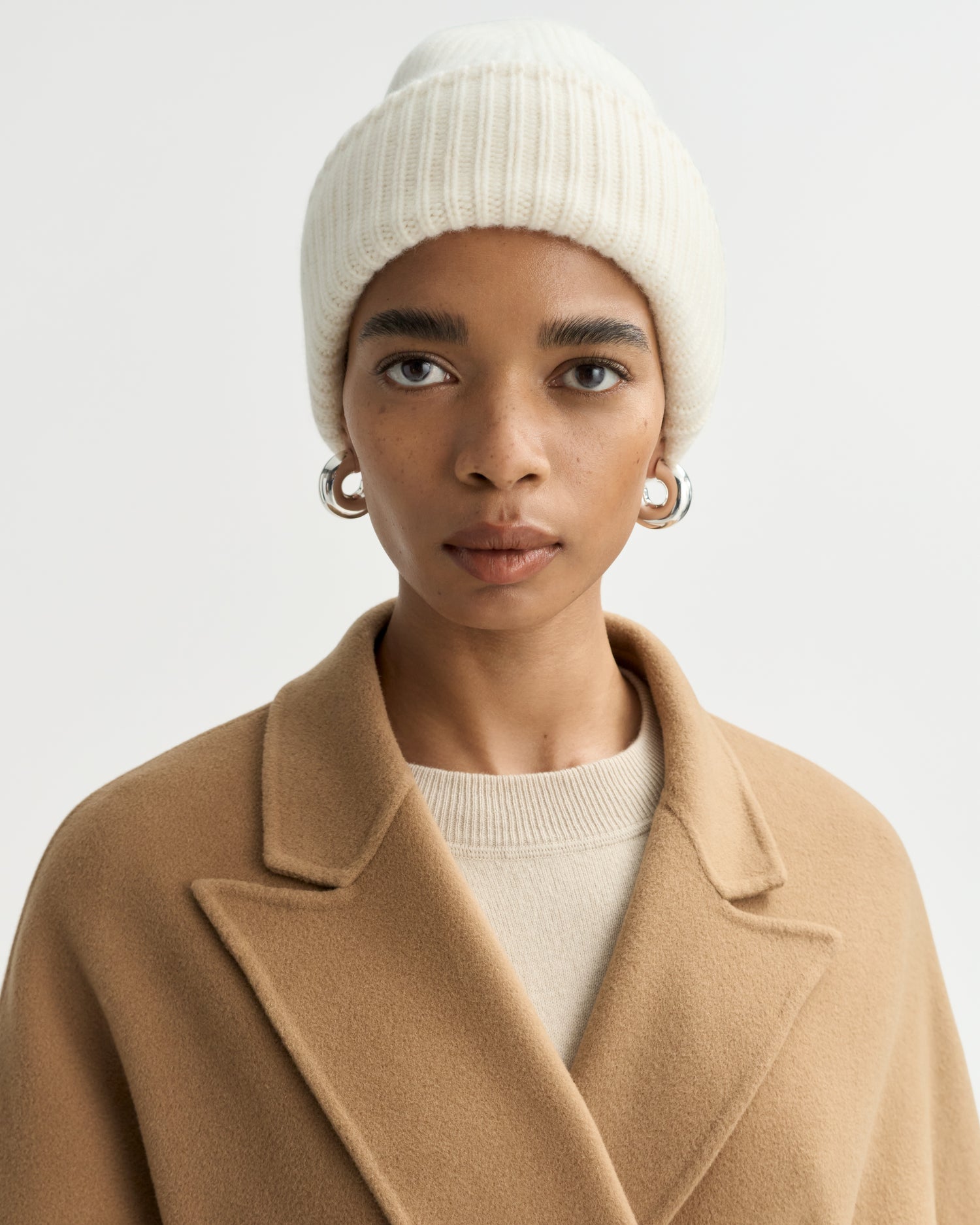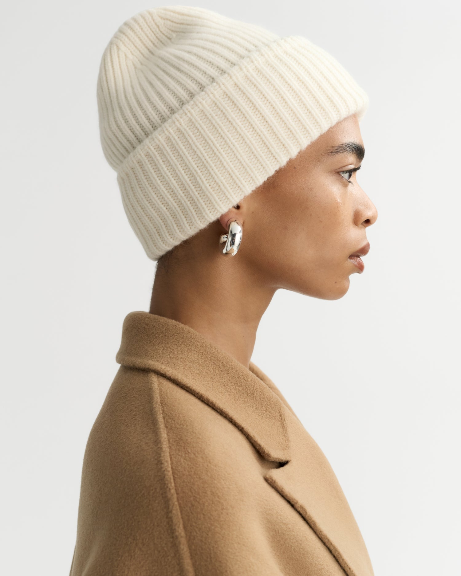 Ribbed knit cashmere beanie